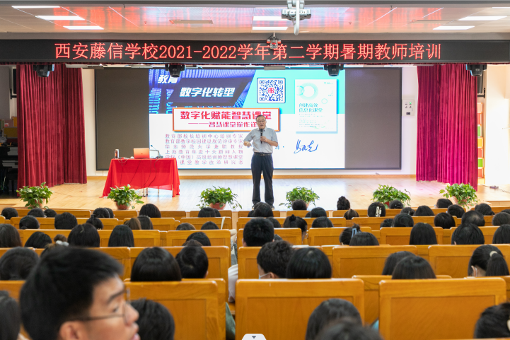为落实智慧教育,建设智慧课堂,推动课堂教学现代化、信息化、数字化,提高教师信息技术应用水平,提升教师课堂教学实践效果,马九克老师于2022年7月11日在西安藤信学校开展题为《数字化赋能智慧课堂》专题讲座,在为期7天的培训中指导教师开展备课、上课、观摩、研讨等活动,并在汇报课活动中进行点评,促进教师理念转变,掌握将信息技术与课堂教学融合的方法,推动课堂改革初见成效。