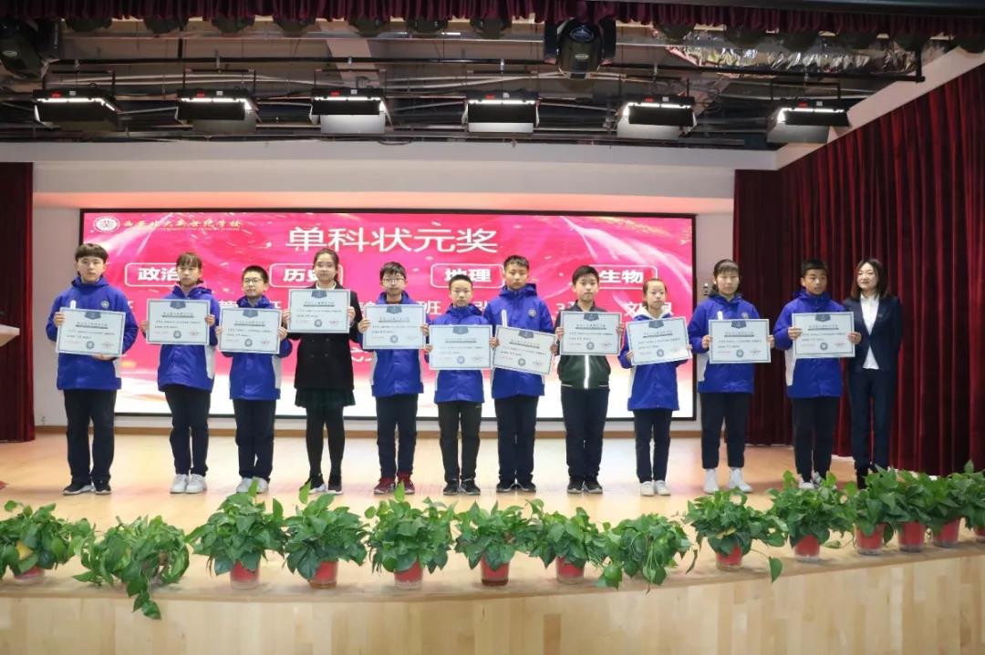 政史地生学科组长马富强老师为三科总分优秀奖获得者颁奖