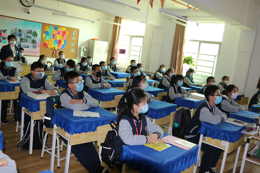 在走读生入学报到工作完成后,西安北大新世纪学校组织初中部学生上了一堂别开生面的“开学第一课”。为了避免人群聚集,讲话老师在学校阶梯教室里,将这堂关键而特别的“开学第一课”转播至每位学生的课堂上。