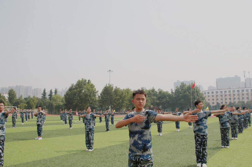 教官手把手教,学生认真的学,在队列比赛中,方队整齐,精神饱满,步伐矫健、口令准确、声音嘹亮。