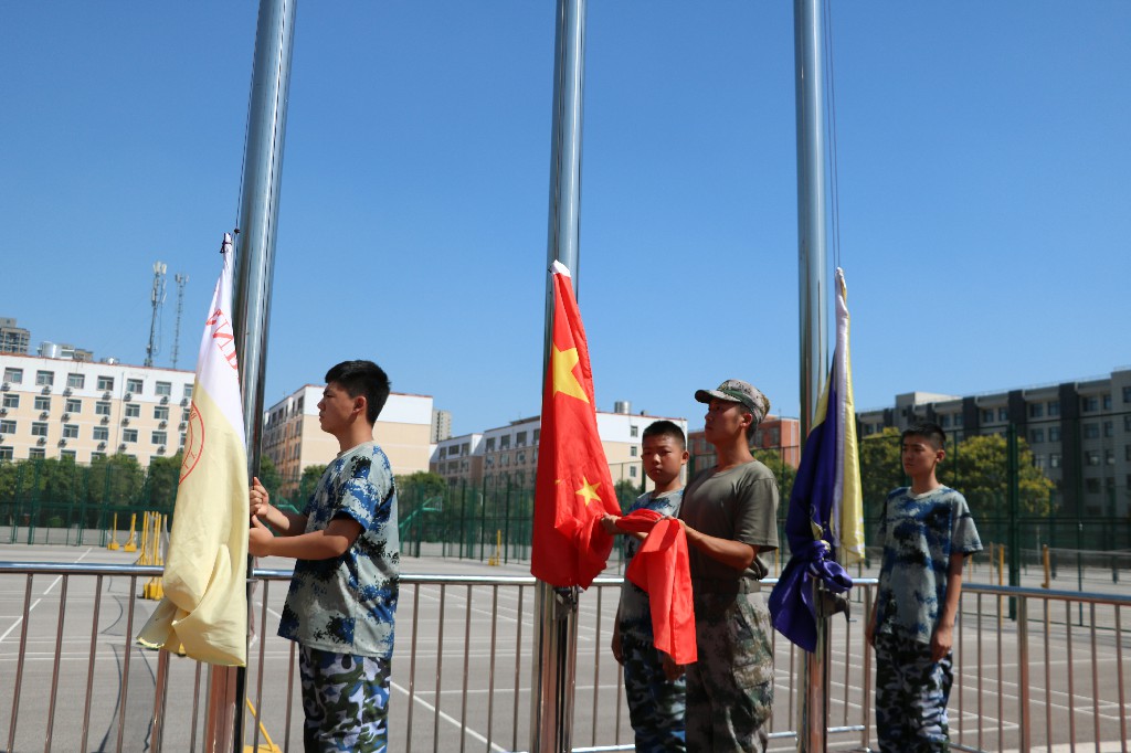 初2020级国旗护卫队,他们迈着矫健的步伐,挺着笔直的身躯,手捧鲜艳的五星红旗朝我们走来。所有人热血沸腾,豪情万丈!