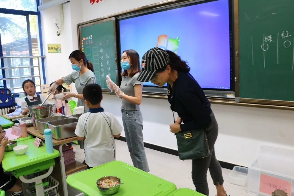 会后,家委们在校领导的陪同下,实地参观了孩子们的用餐仪式,大家就针对米饭软硬和菜色新鲜、营养搭配,乃至味道口感,都进行了当场反馈,食堂负责人也表示将不断完善,做到更好!当家委会代表们看到孩子们有序排队、文明就餐的场景,脸上露出了欣慰的笑容,对孩子良好的就餐习惯不禁发出赞叹!