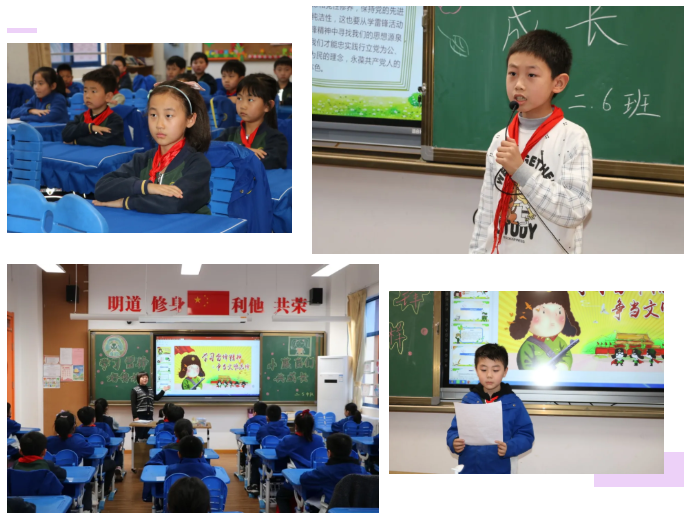 三月春风暖人心,雷锋精神代代传。班会课上,小藤苗们在正蒙导师的指导下,学讲雷锋故事、朗读雷锋名言、同读雷锋日记、共同擦洗校园,努力践行雷锋精神,在班级中形成了“人人学雷锋、天天学雷锋、时时有雷锋”的良好氛围。