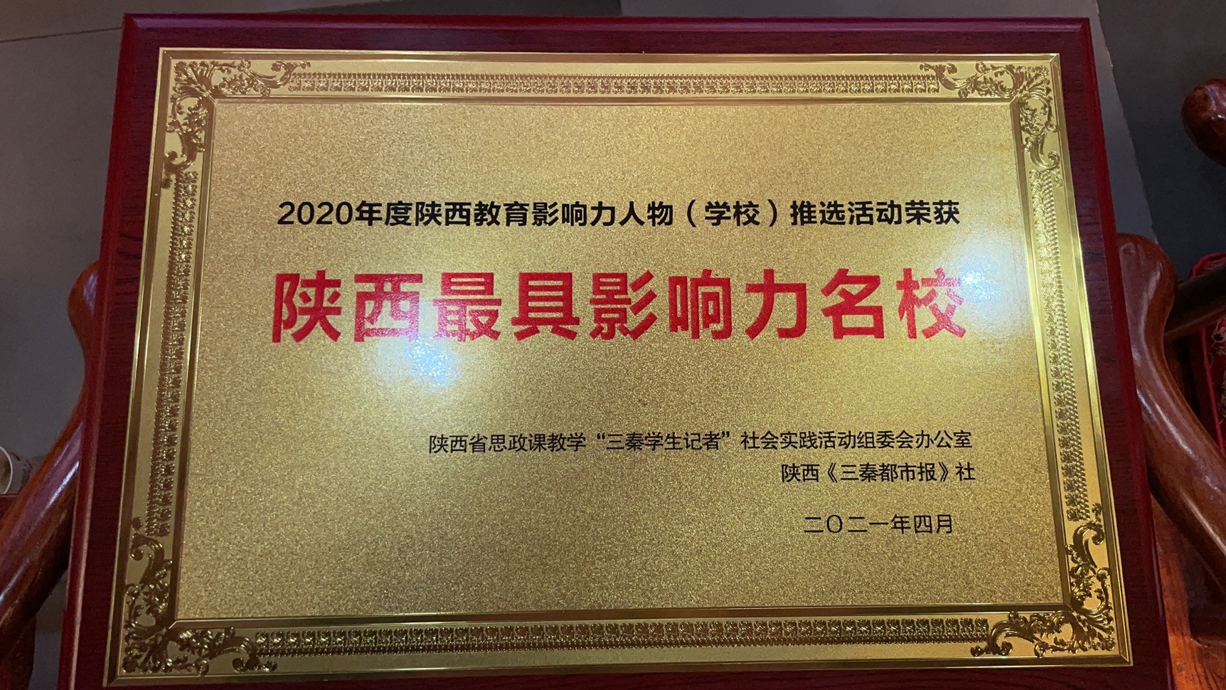本次活动典礼中颁发了陕西名校+教育联合体标杆学校、陕西最具影响力名校、陕西教育突出贡献人物等十多个奖项。我校在2020年度陕西教育影响力人物(学校)推选活动中荣获“陕西最具影响力名校”奖项。