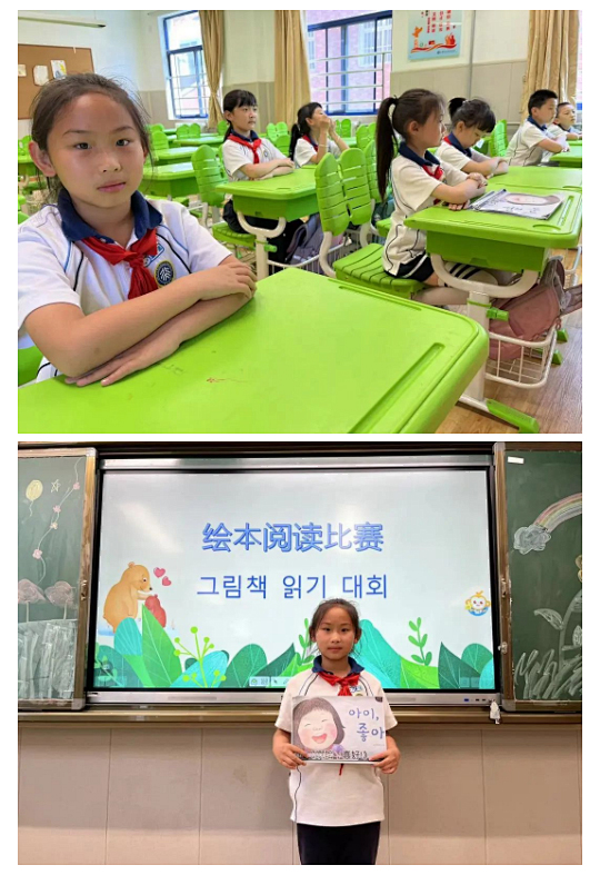“绘本阅读,遇见最美好的童年”。二三年级的同学以班级为单位进行了韩语绘本的阅读比赛。孩子们充满童趣的绘本故事《에이, 좋아(哎呀,真好)》 《아침이에요, 일어나요(早晨了,起床了)》朗读将孩子们在韩语绘本朗读的浓厚兴趣展现的淋漓尽致,深情并茂的朗读让孩子们的韩语学习热情高涨。