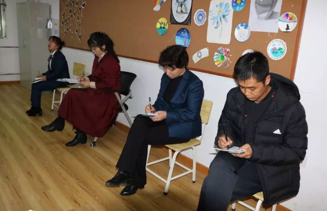 在跟班听课中,教研员们在课堂上仔细观察,认真记录。