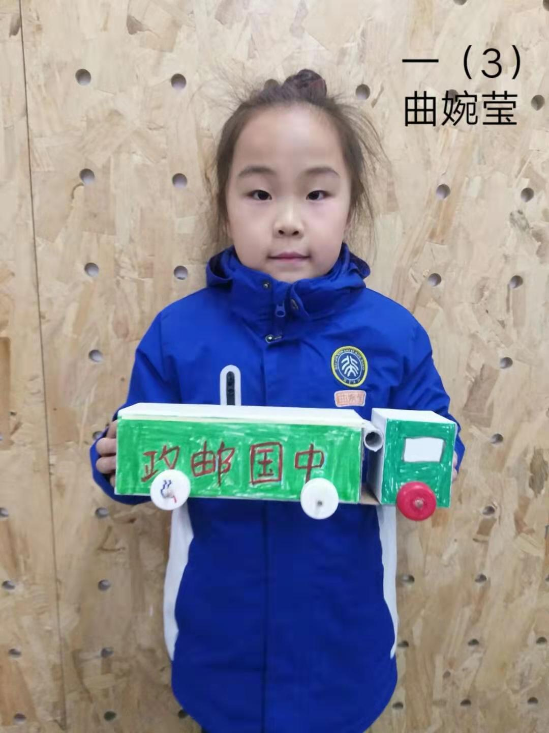 我制作了一辆我们最熟悉中国邮政车,用的是生活中最常见的长方体、正方体、球形、圆柱。大家看漂亮吗?