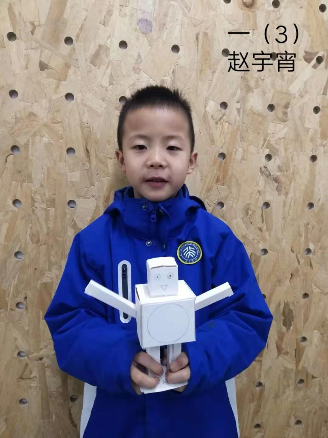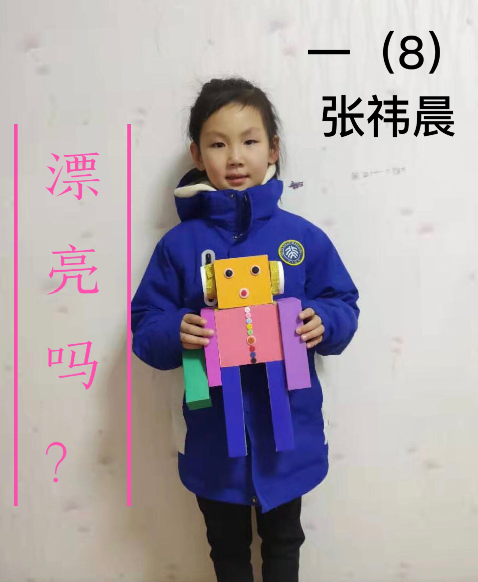 大家看我做的机器人是不是很神气啊?他可是我心中的奥特曼,无所不能哦!我也很想拥有这样的超能力,让自己变得更优秀!